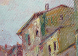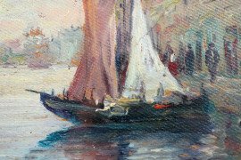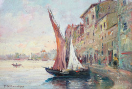 Scorcio di Venezia, olio su tela riportata su cartone, firmato, cm 18x24, entro cornice