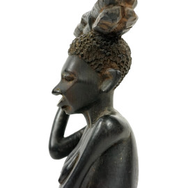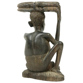 Scultura africana in legno ebanizzato e intagliato rappresentante una figura femminile seduta, XX secolo, h cm 27,5