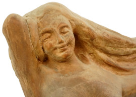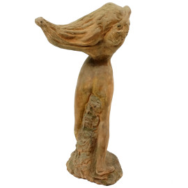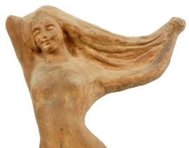 Scultura in terracotta con tracce di policromia raffigurante una figura femminile, siglato alla base D.B., XX secolo, h cm 73