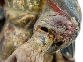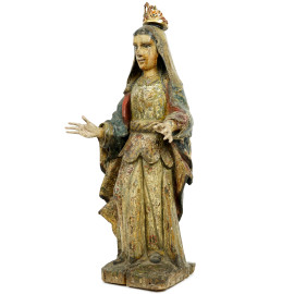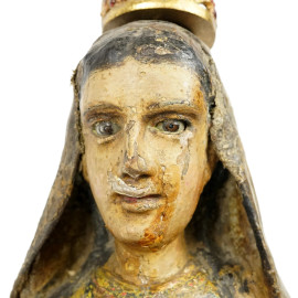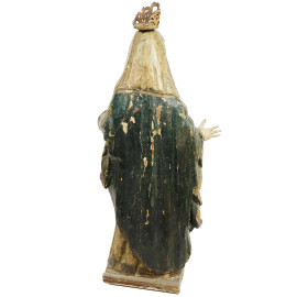 Scultura sudamericana in legno intagliata policroma rappresentante la Madonna, XIX secolo, h cm 66 (difetti)