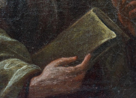 Scuola del XVIII secolo, Santo, olio su tela, cm 27x22, entro cornice, (difetti)