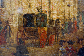 Scuola inglese, XIX-XX secolo, Scorcio di St. Martin's Church da Pall Mall East, olio su rame, cm 21x32, , (difetti)