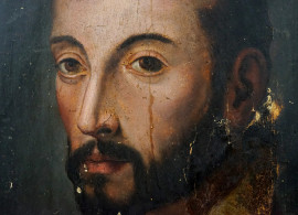 Scuola italiana del XVI secolo, Ritratto d'uomo, olio su tavola, cm 52x41.5, entro cornice