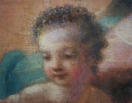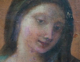 Scuola italiana del XVIII secolo, Madonna con il Bambino, olio su tela, cm 70x55,5 (frammento)