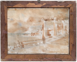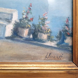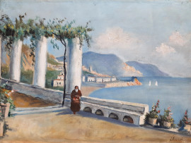Scuola Napoletana della seconda metà dell’800, Terrazza sul Golfo di Napoli, olio su tela, cm 37x49, firmato, con cornice