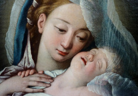 Seguace di Giovanni Battista Salvi, Il Sassoferrato (1609 - 1685), Madonna con Bambino, olio su tela, cm 48.5x38.5, entro cornice