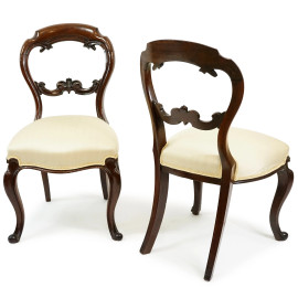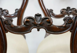 Sei sedie in mogano, schienale a giorno, seduta imbottita, gambe anteriori mosse, le posteriori a sciabola, inizi XX secolo, cm h 89,5