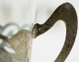 Servizio di 5 bicchierini in vetro e argento, inizio XX secolo, h cm 5,5, peso gr. 26 (difetti)