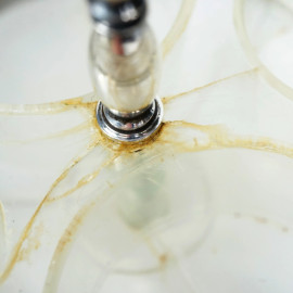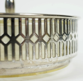 Set di olio, aceto, sale e pepe in vetro e metallo argentato, XX secolo, altezza cm 18