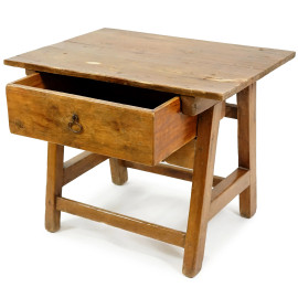 Tavolino basso in legno con cassetto frontale, XIX secolo, cm h 55x69x52,8 (difetti)