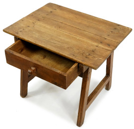 Tavolino basso in legno con cassetto frontale, XIX secolo, cm h 56,7x70x51,5 (difetti)