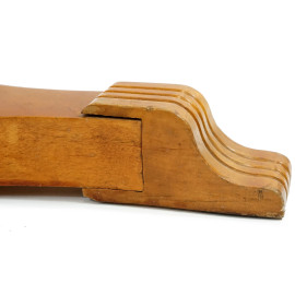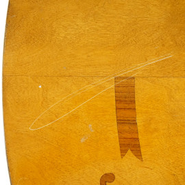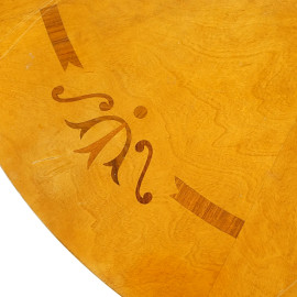 Tavolino da centro in betulla, XX secolo, piano circolare sorretto da fusto a balaustro, base quadrilobata, cm h 70x80