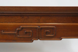 Tavolo basso in teak, manifattura orientale, XX secolo, cm h 45x131x80