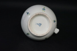 Teiera in porcellana policroma con finiture dorate, Vienna, inizi XIX secolo, marchio sotto la base, h cm 19,5 (difetti)