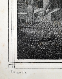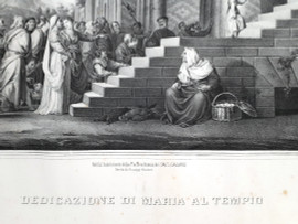 Tiziano Vecellio e Cecilio Rizzardini, Dedicazione di Maria al Tempio, grande grafica su carta della prima metà dell’800, immagine in eccellenti condizioni, qualche fioritura ai bordi, cm 68x98