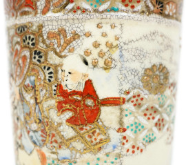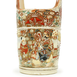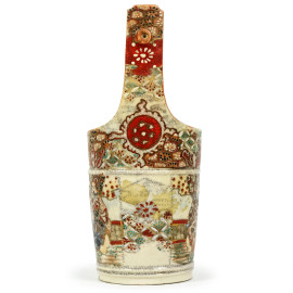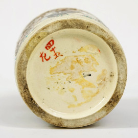 Vaso a secchiello in ceramica policroma, Satsuma, Giappone, XX secolo, cm h 21, (difetti)