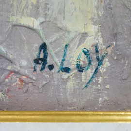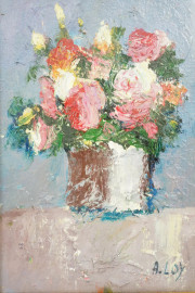 Vaso con fiori, olio su compensato, cm 32x21,5, firmato, entro cornice