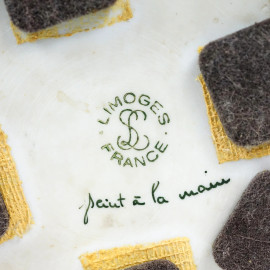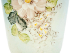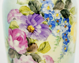 Vaso in porcellana Limoges, XX secolo, a smalti policromi, con decoro a bouquet di fiori, profili dorati, cm h 30,5
