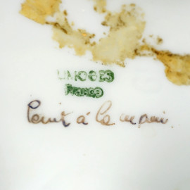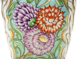 Vaso stile Liberty in porcellana Limoges, XX secolo, a smalti policromi, con decoro floreale e finiture dorate, cm h 33