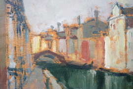 Veduta di Venezia, olio su tavoletta, cm 19,5x35,5, firmato Silvio Polloni, entro cornice