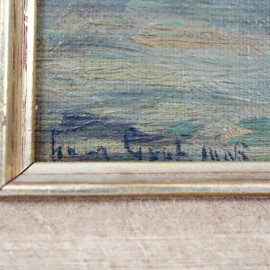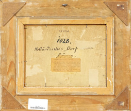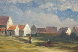 Veduta di villaggio, olio su cartone telato, firmato e datato in basso a sinistra, cm 23,5x18, entro cornice