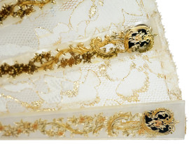 Ventaglio in pizzo e finta madreperla, XX secolo, cm 23x43, (difetti)