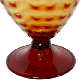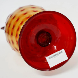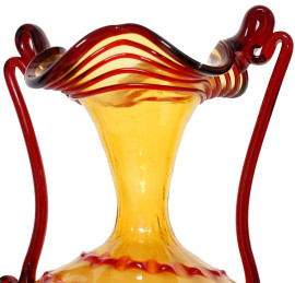 Vetreria Fratelli Toso Vaso, Murano, anni '20, Vaso ad anfora in vetro soffiato paglierino con applicazioni bugnate rosso ruggine, orlo ondulato e anse a riccioli, XX secolo, h cm 44.5