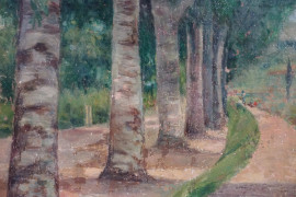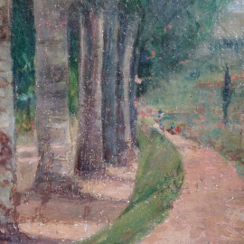 Viale alberato, olio su tela, cm 42x29, firmato, entro cornice
