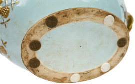 Zuppiera con coperchio in porcellana policroma, Canton, inizi del XIX secolo, manifattura cinese per il mercato americano, cm h 29, (lievi difetti).