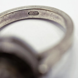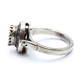 Anello in argento e diamanti taglio vecchio 0,40 e rosetta centrale circa 3 ct, misure n.14, peso gr. 7,4