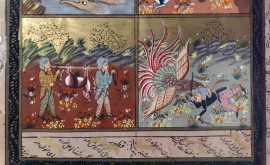 Arte islamica, antica e originale pagina miniata iraniana “Negargarè” raffigurante Sei scene di caccia e di vita quotidiana, Persia, primi dell’800, colori vegetali e oro zecchino su carta, cm 27x18, reca iscrizioni vergate a pena d’oca e inchiostro nero in lingua araba