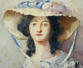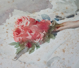 Aurelio Craffonara (Gallarate, 1875 - Genova, 1945), Fanciulla con mazzo di fiori, acquerello su carta, cm 55x41, firmato con dedica, entro cornice