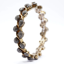 Bracciale rigido in argento con diamanti, realizzato come una teoria di foglie, diametro cm 7, peso gr. 40,5, (lievi difetti)