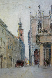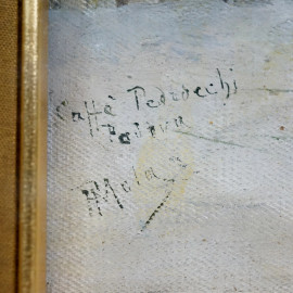 Caffè Pedrocchi Padova, olio su tela, cm 18x13, firmato F.Mola, entro cornice