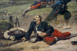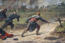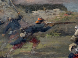 Charles Castellani (Bruxelles, 1838 - Bois le Roi, 1913), Battaglia, olio su tela, cm 76x120, entro cornice