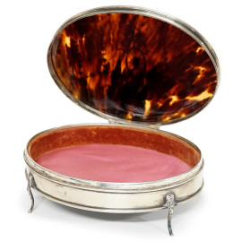 Cofanetto portagioie in argento Mappin & Webb, inizi XX secolo, cm 6,5x18x13, (lievi difetti)