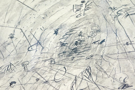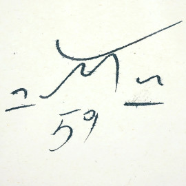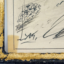Composizione astratta, china acquerellata su carta, siglato e datato fronte e retro, cm 20,4x17,5, entro cornice