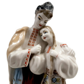 Coppia di amanti, rara scultura in ceramica policroma smaltata di probabile manifattura russa, eccellenti condizioni, altezza cm 29