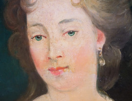 Coppia di dipinti rappresentanti il ritratto di un Cavaliere dell'Ordine Militare di San Luigi, da Hyacinthe Rigaud (Perpignan 1659 - Parigi 1743), e di una gentildonna, olio su tela in assetto ovale, XX secolo, cm 79x59, entro cornici