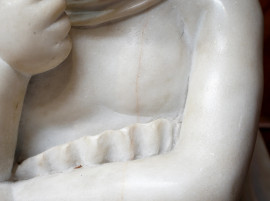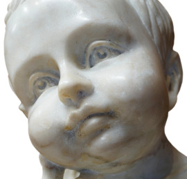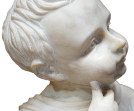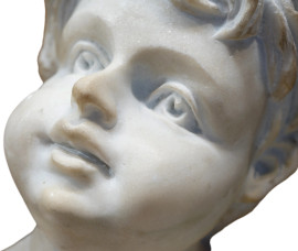 Coppia di sculture in marmo bianco di Carrara raffiguranti putti, XX secolo, altezza max cm 104