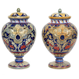 Coppia di vasi in ceramica a lustro, Gualdo Tadino, XX secolo, altezza max cm 33