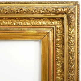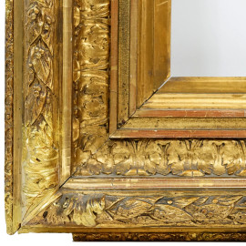 Cornice intagliata e dorata, XIX secolo, ingombro cm 116x144, battente cm 111x82,5