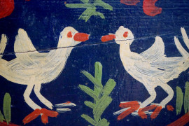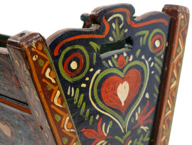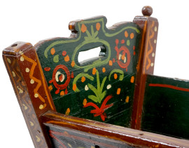 Culla tirolose in legno dipinto, XIX secolo, cm h 60x92x44