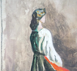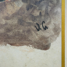 Figura femminile di spalle, acquerello su carta, siglato in basso a destra V.C., cm 20,8x16,5, entro cornice
