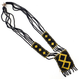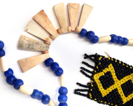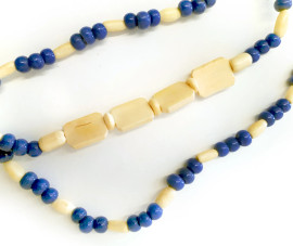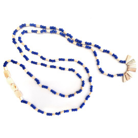 Grande rara collana vintage di artigianato etnico in pietre dure blu cobalto lunghezza cm 230 e piccola collana in perle nere e gialle