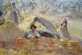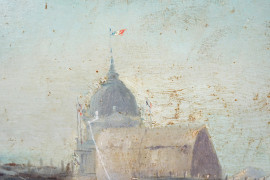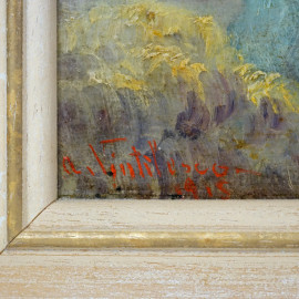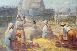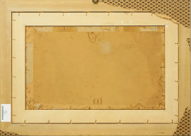 Il mercato dei vasi, olio su cartone, firmato e datato in basso a sinistra, cm 26,5x45,5, entro cornice