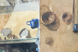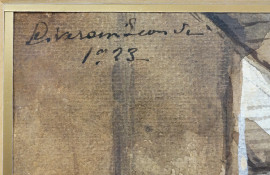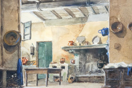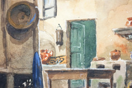 Interno di cucina, acquarello su carta, cm 20,5x30,5, firmato e datato in alto a sinistra, entro cornice