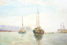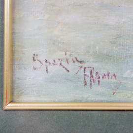 La Spezia, olio su tela, cm 17,5x31, firmato F.Mola, entro cornice