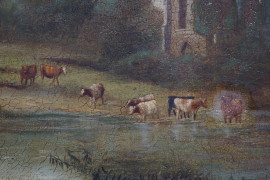 L'abbazia di Tintern, olio su tela, firmato in basso a sinistra, cm 61x91.5, entro cornice