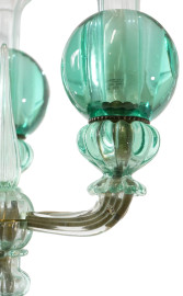 Lampada da terra in vetro verde, attribuita a Seguso, Murano, anni'40, a tre luci, cm h 156 circa